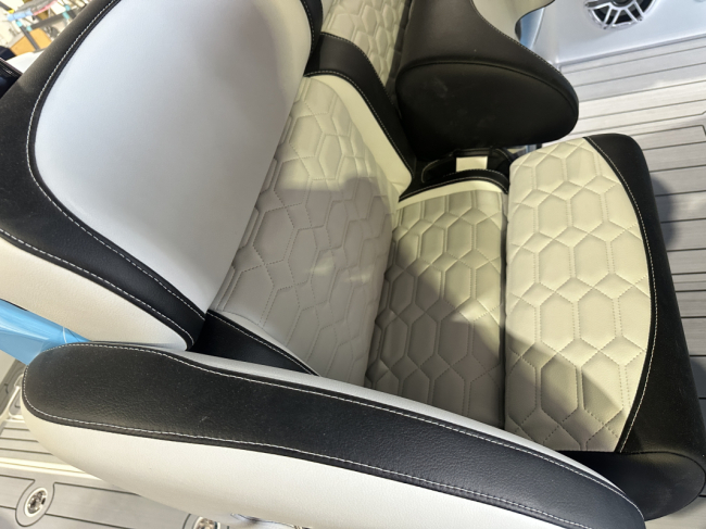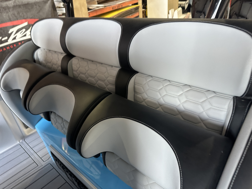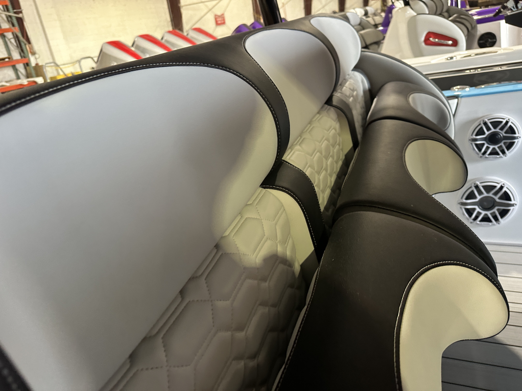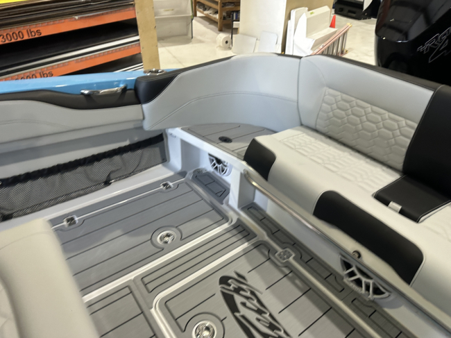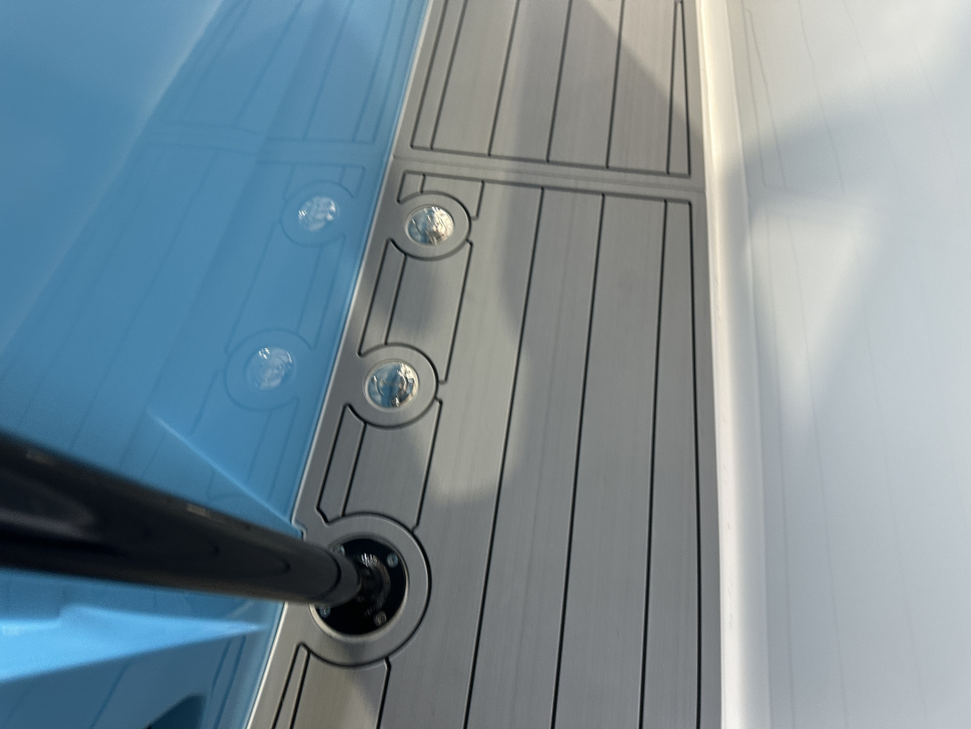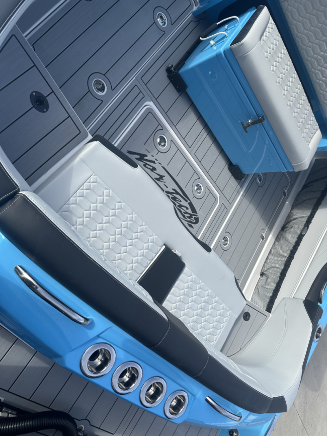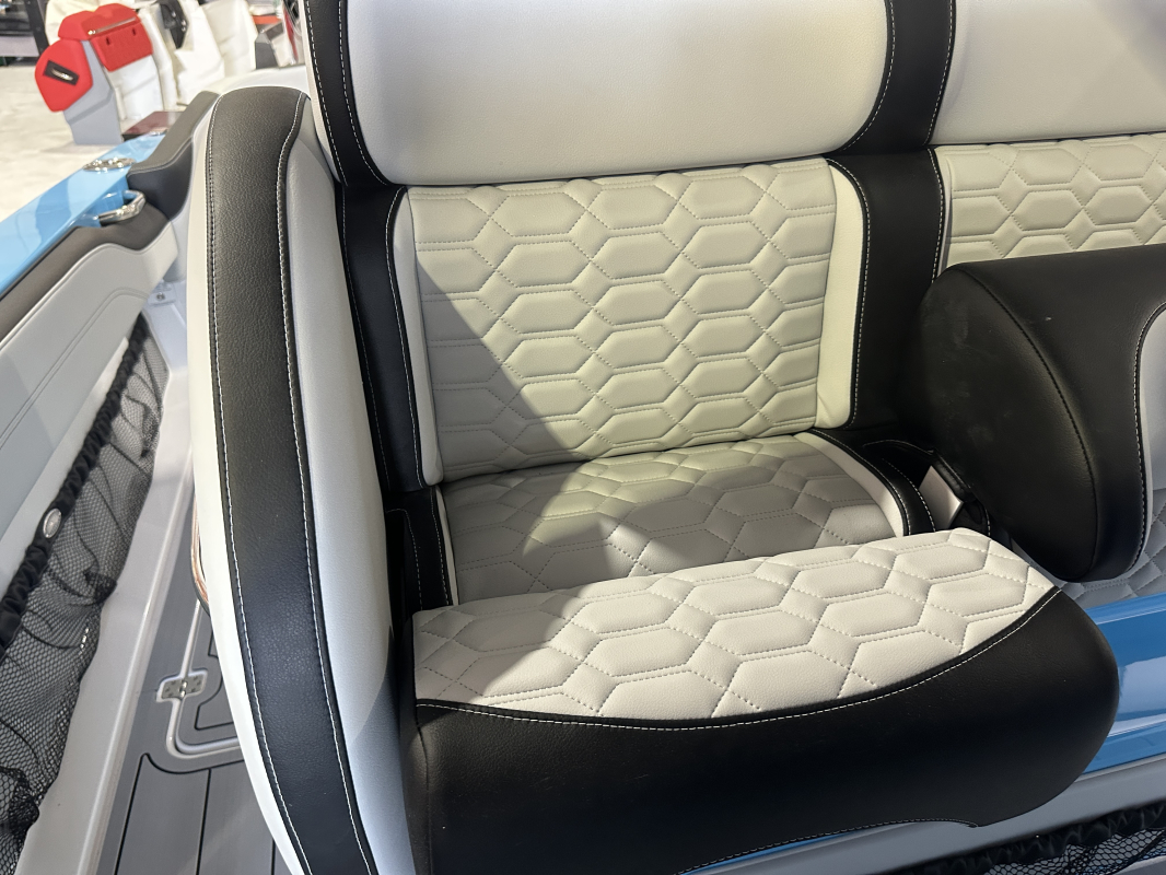2025 Nor-Tech 340 Sport. Powered by triple Mercury Racing 400R V10's. Big option list including Zero Effort Controls, Club Sport rear bench, twin Garmin 8622 GPS, Big JL Audio stereo, VHF, transducer, bow thruster, big paint upgrades, largest available all JL audio sound system including backlit speakers, Sea Dek, Black Oak LED light bar, fresh water flush, flush toilet/macerator, retractible boarding ladder, windlass, electric bow table/lounge, Sea-Dek, forward facing backrests in bow, hexagon interior, large t-top and much more. The black gel bottom with the Lamborghini Urus blue paint makes this one a showstopper. Only $632,400 USD.
