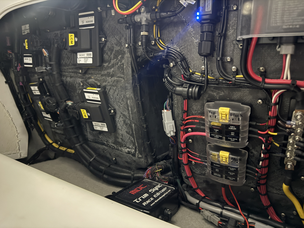 2025 Nor-Tech 4000 Roadster Quad Cat. Rare find. The only pre-owned Nor-Tech quad cat available. Quad Mercury Racing 500R with warranty, spectacular paint, seating for 10, enclosed head, cabin with lounge and a pile of storage, full carbon fibre layup, JL Audio stereo with carbon fibre speakers, Nor-Tech auto-trim, Nor-Tech's patented water pickup system, automatic fresh water flush system, REAL AMG glass windscreen, dual mirrors, table for rear lounge area, Bimini top, cockpit cover and much more.