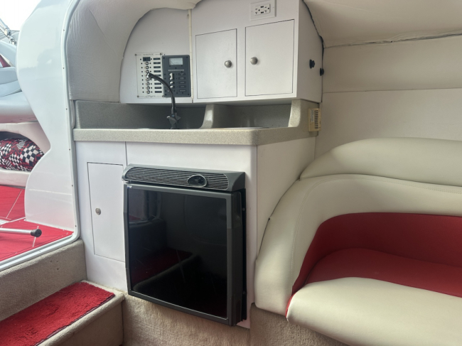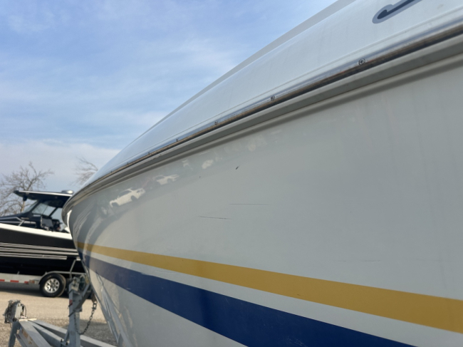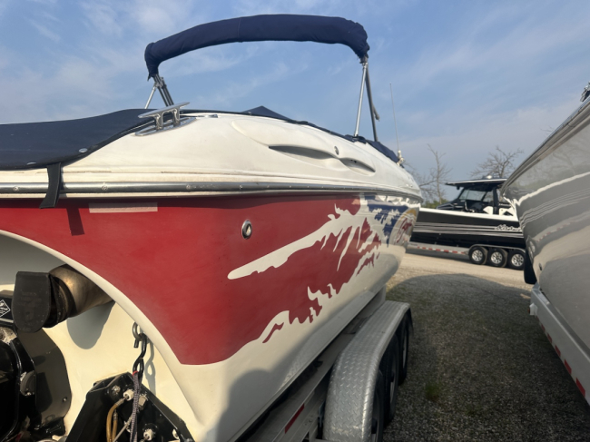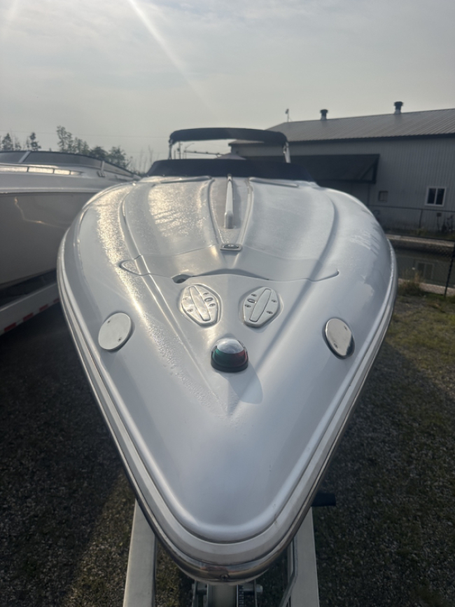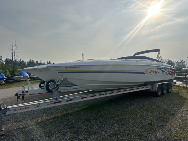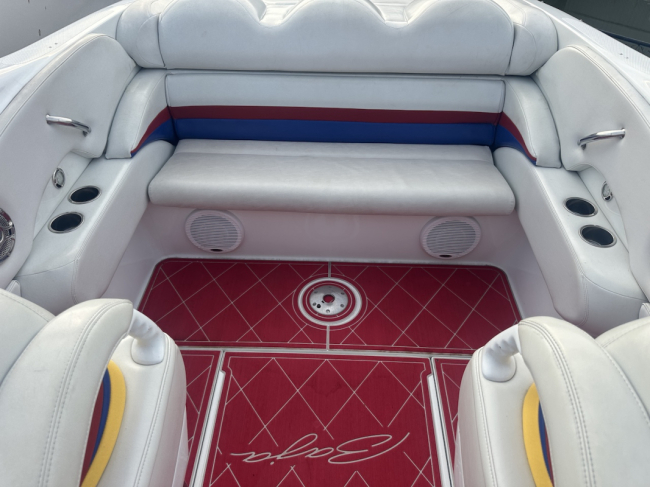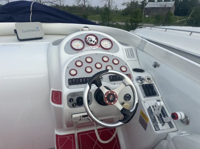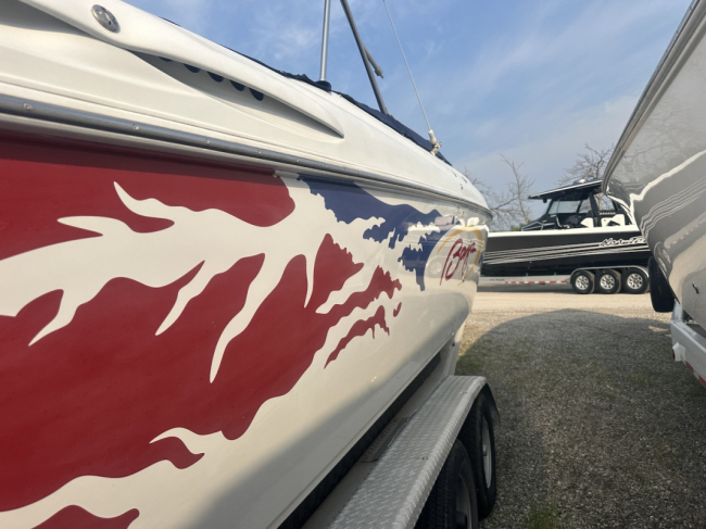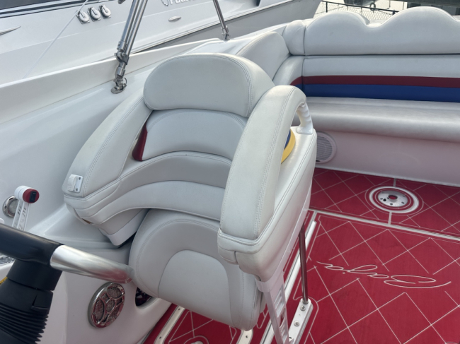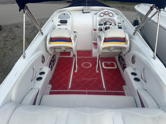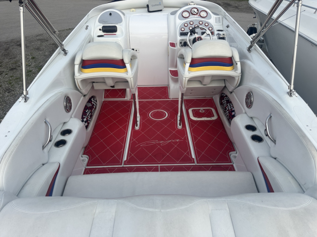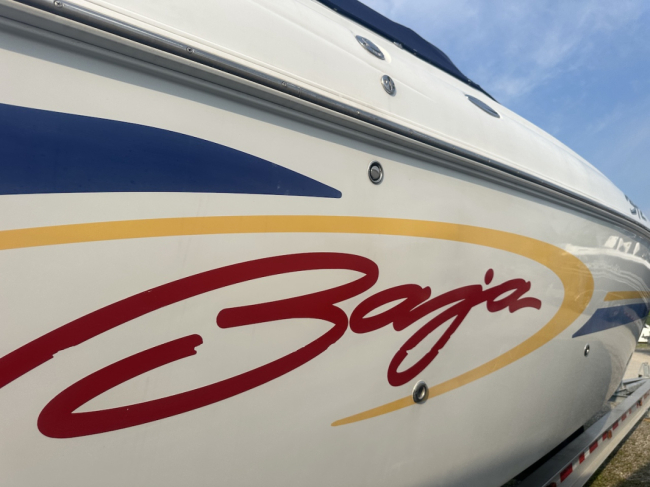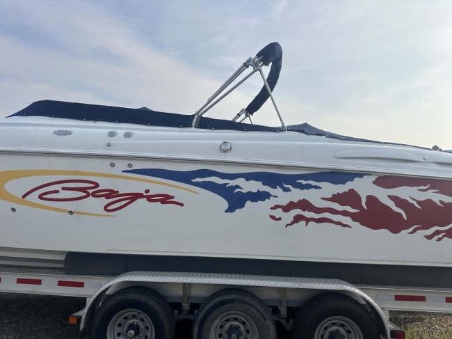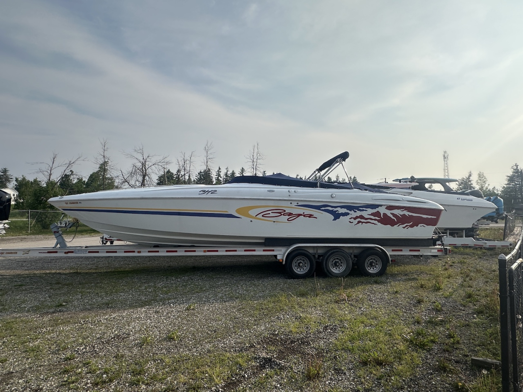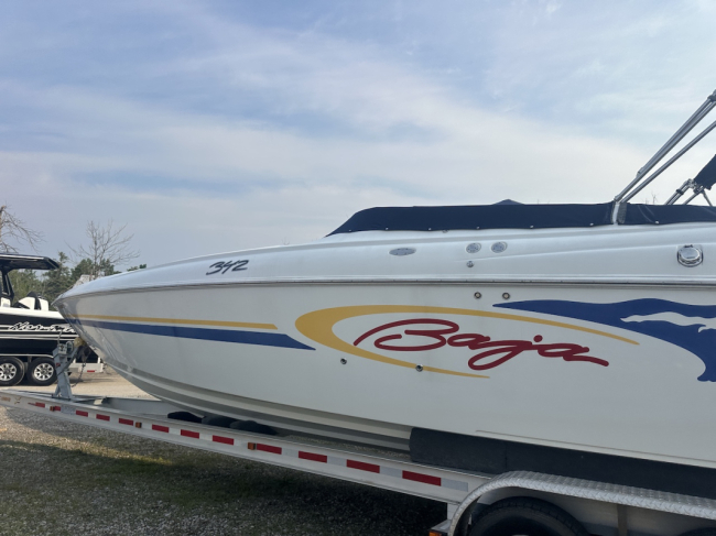 2002 Baja 342 powered by twin Mercury 496HO's and Bravo 1's. Options include full time mufflers, switchable exhaust, drive showers, K-planes, hydraulic steering, Bimini top, power bolsters, fridge, enclosed head with pump out and much more. You can have a sleep able fast boat here. Modernized with Sea Dek and Garmin GPS, the entire package is yours on the trailer for $38,750 USD.