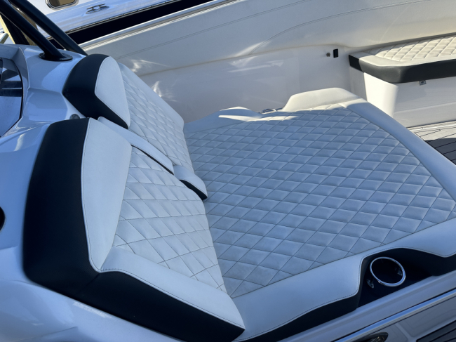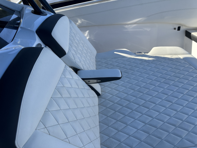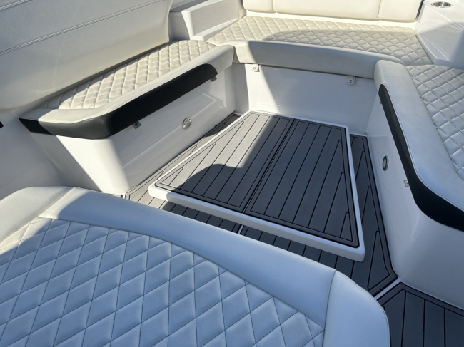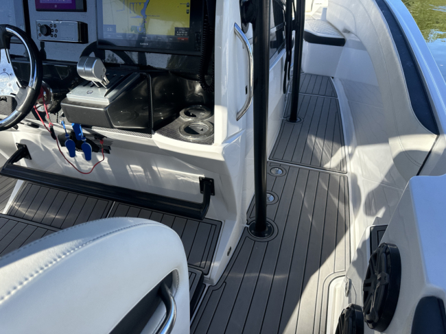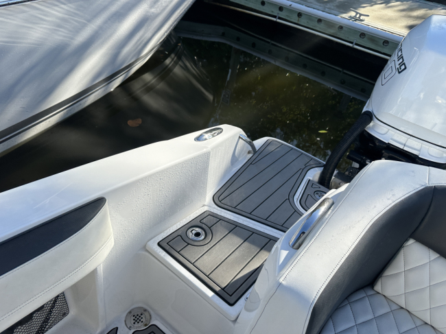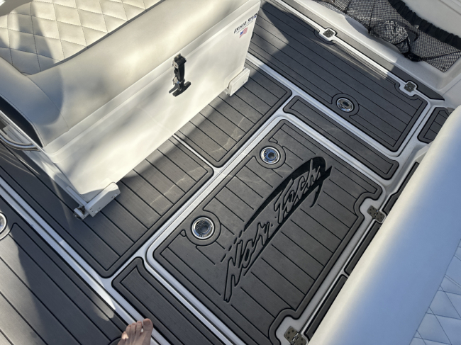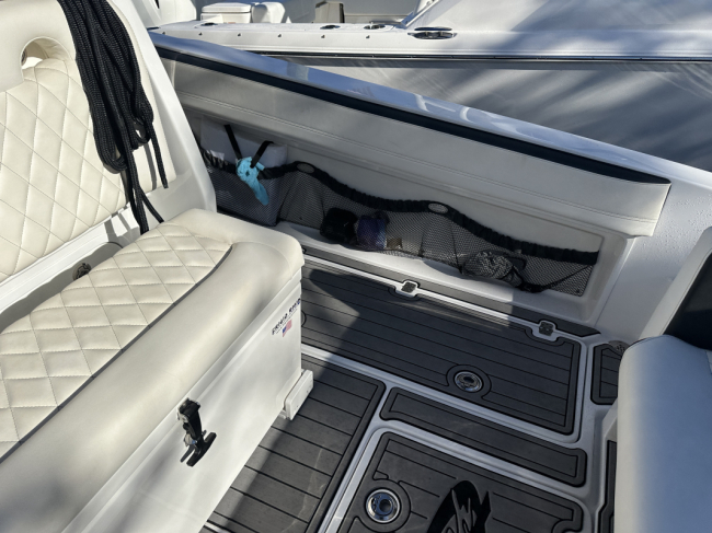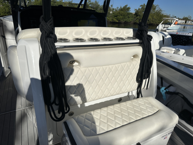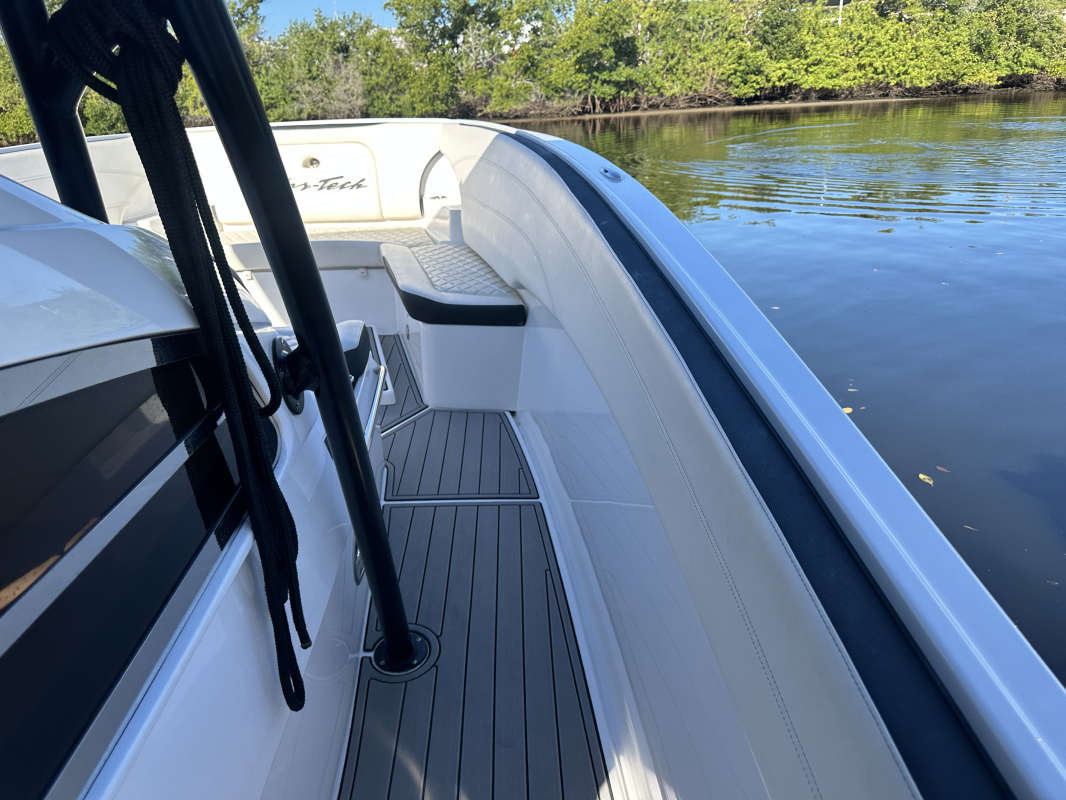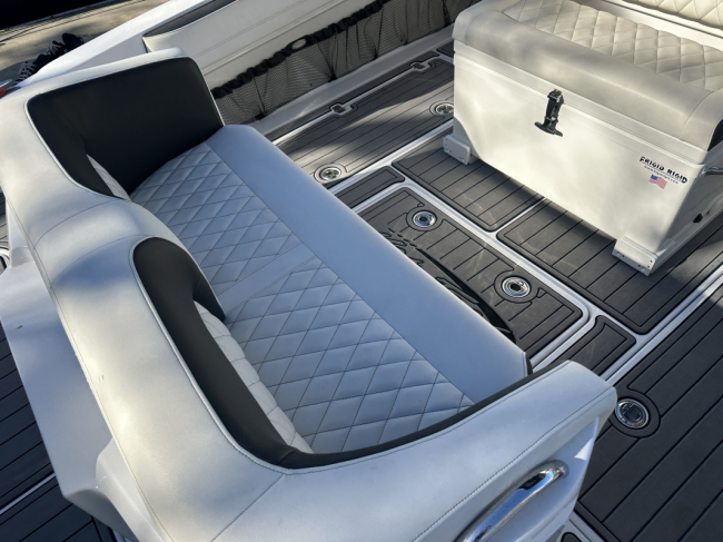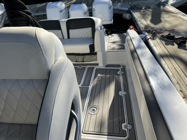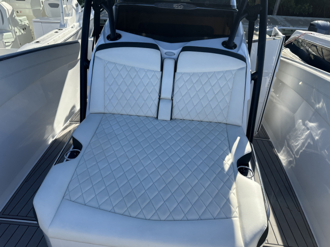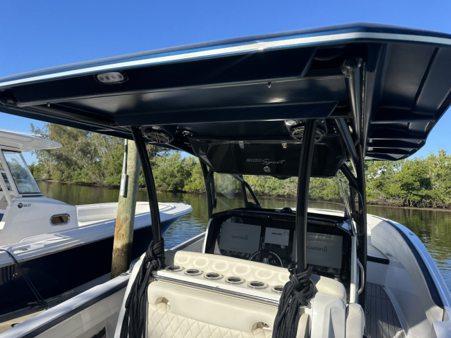 2018 Nor-Tech 340 Sport: Clean boat powered by custom painted triple Mercury Racing 400 R's with only 260 hours. Big option list includes diamond stitched interior, Sea Dek, big stereo, sliding cooler, large t-top, bow thruster, FLIR, bow shade, bow table/sun lounge and much more. Stored indoors since new. Great affordable opportunity to get into Nor-Tech.