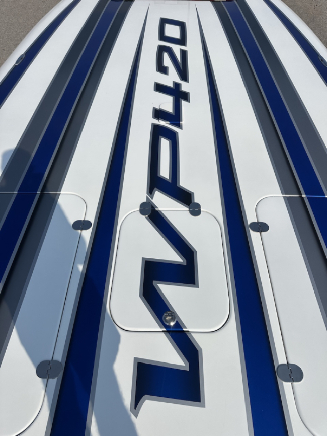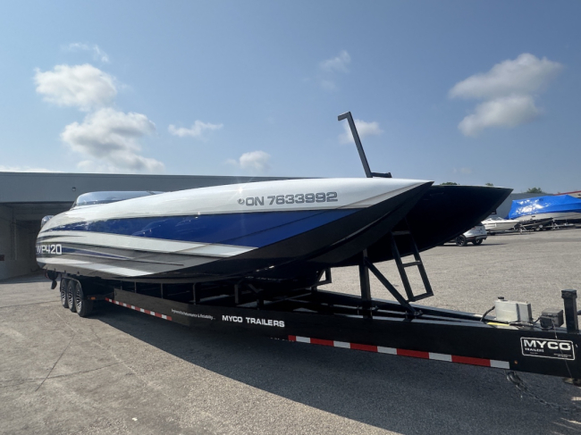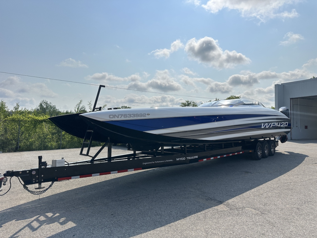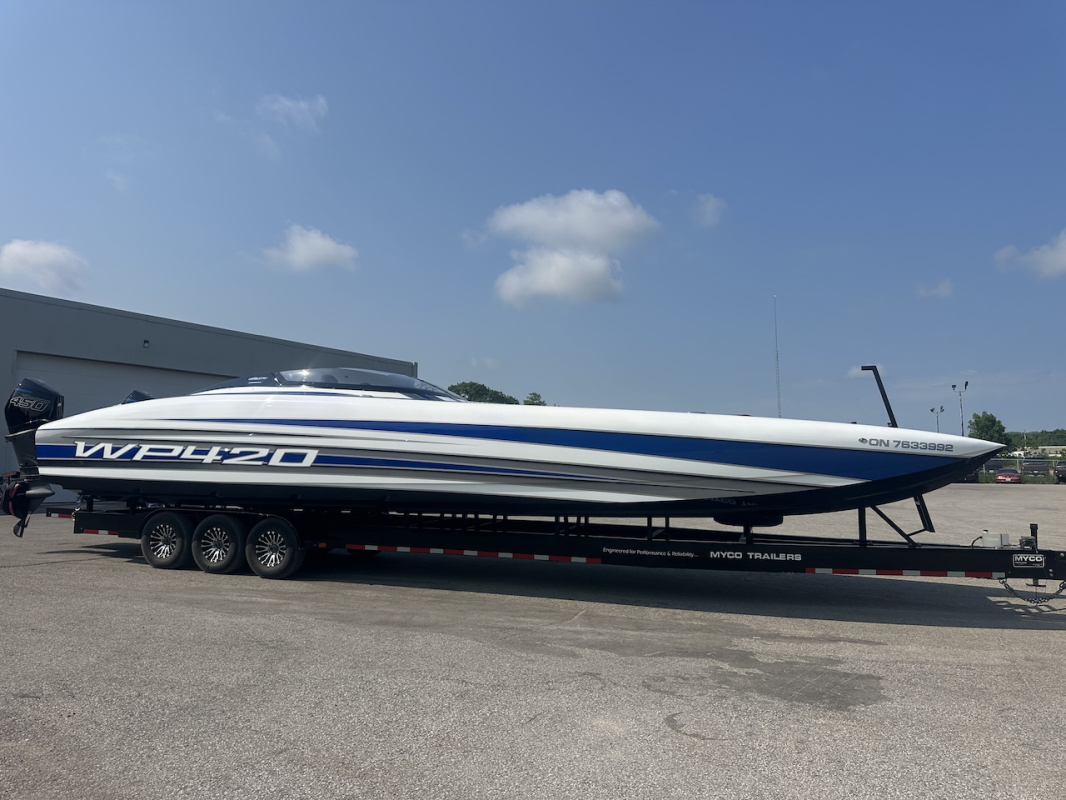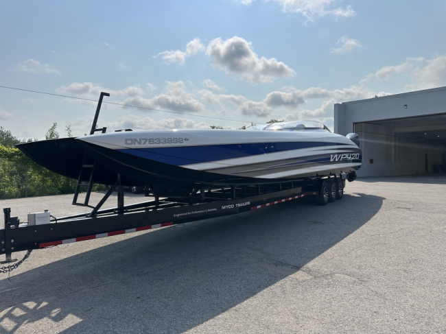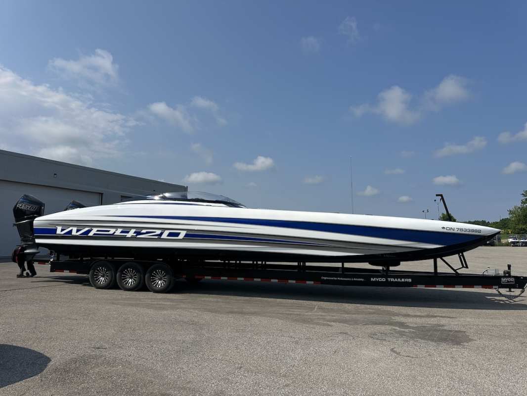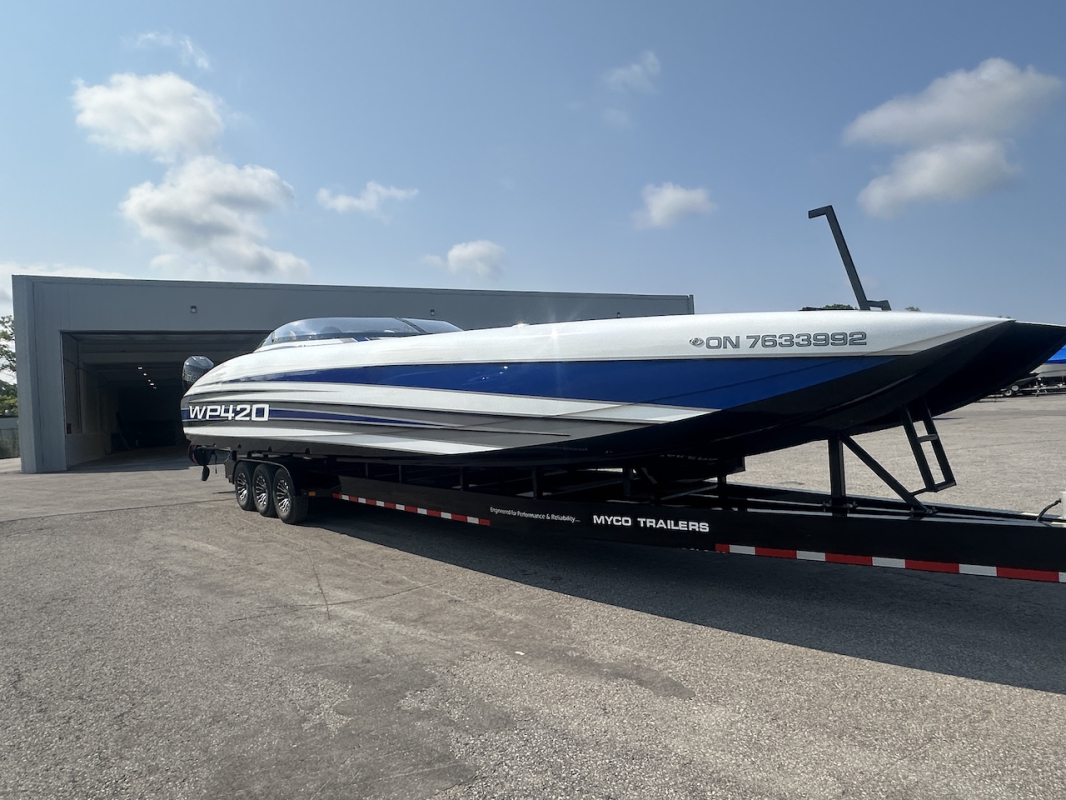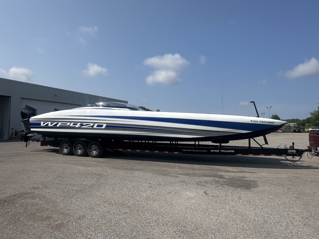 Extra clean 2018 Wright Performance 420. Powered by twin Mercury Racing 450R's. Tons of options including FLIR nightvision, sweet paint throughout, 22" Garmin, Alcantara interior, BIG stereo, Sea Dek, retractable boarding ladder, dash fans, push button start and much, much more.