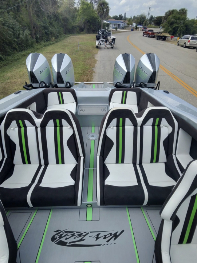 2025 Nor-Tech 4000 Roadster Quad Cat. Rare find. The only pre-owned Nor-Tech quad cat available. Quad Mercury Racing 500R with warranty, spectacular paint, seating for 10, enclosed head, cabin with lounge and a pile of storage, full carbon fibre layup, JL Audio stereo with carbon fibre speakers, Nor-Tech auto-trim, Nor-Tech's patented water pickup system, automatic fresh water flush system, REAL AMG glass windscreen, dual mirrors, table for rear lounge area, Bimini top, cockpit cover and much more.