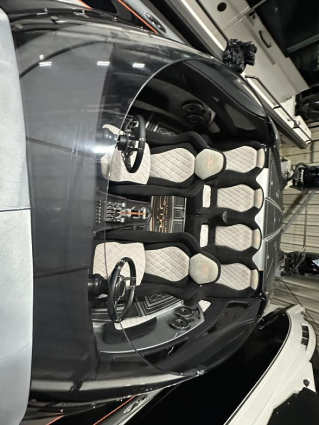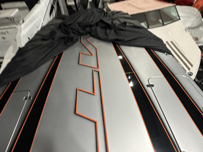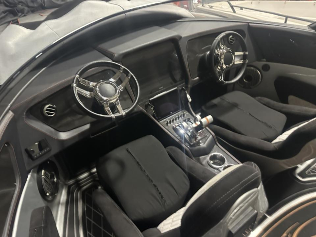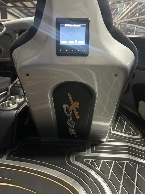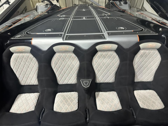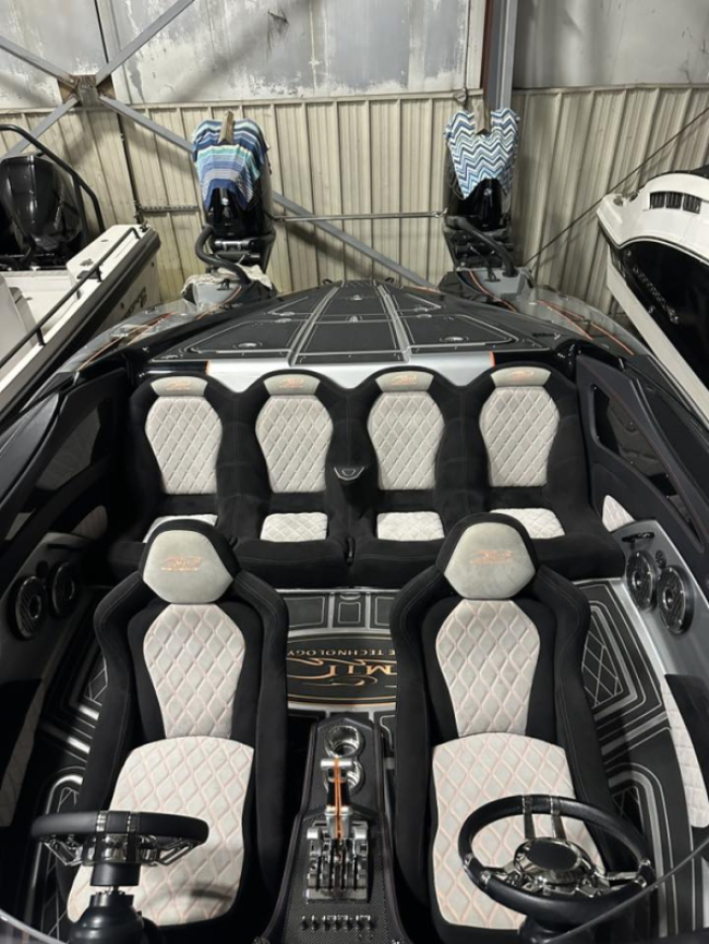 We just took this 34 MTI with low-hour warrantied 500R’s in on trade. New Alcanterra interior, dual helm, upgraded stereo and much more. It came on trade from one of our clients whose boats are always nicer after he has them before he gets them. And it shows!